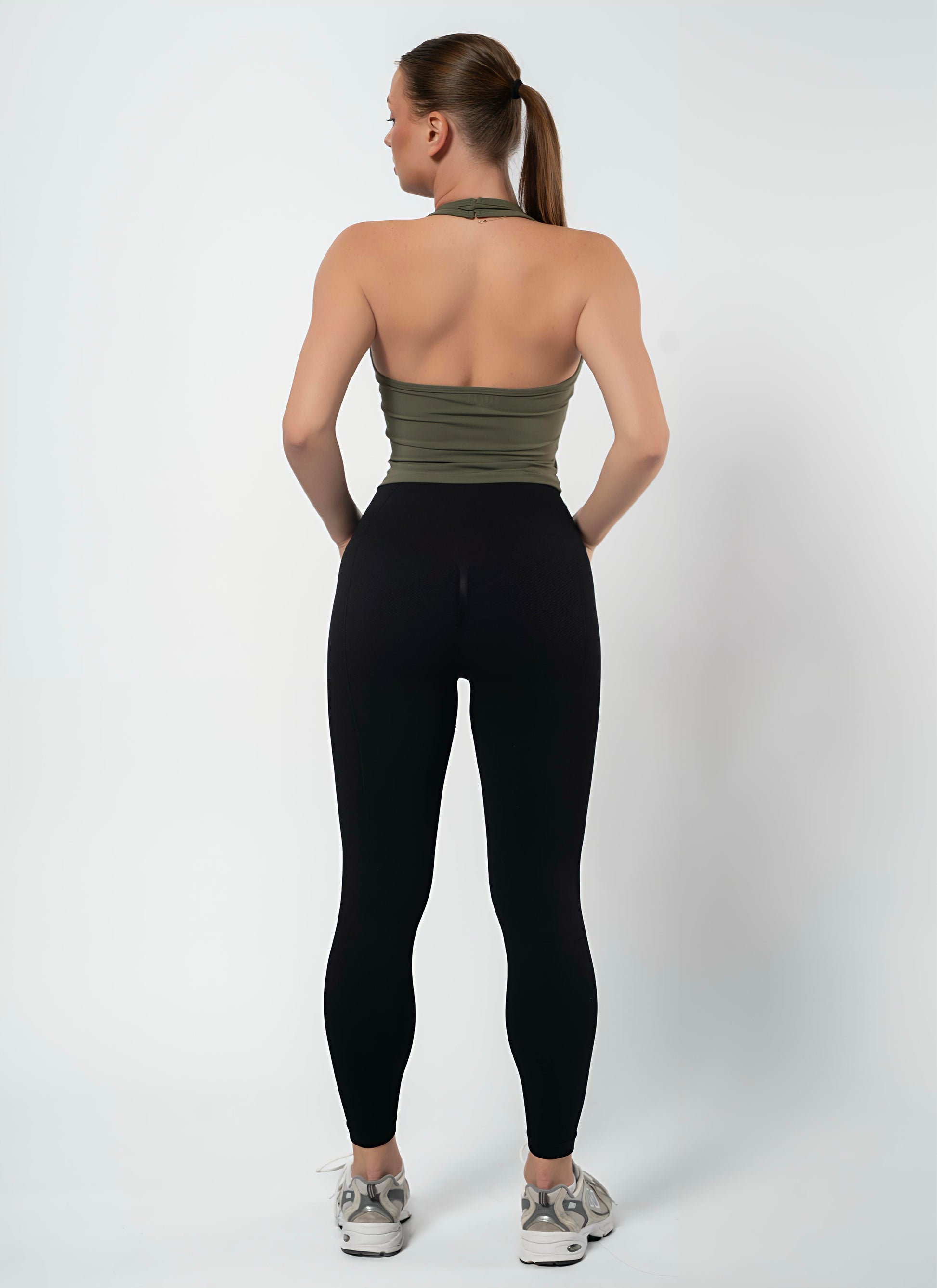 Dark Fit Halter Crop Top كيجمع بين تصميم أنثوي جريء وأداء رياضي عملي، سواء فالتمرين ولا فاللوك اليومي.